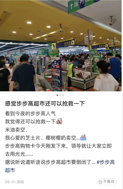 近日,“步步高欠款倒闭”、“步步高购物卡不让用”等消息引发关注。此步步高非彼步步高,涉及传言的是一家来自湖南的商贸企业。 6月2日,步步高商业连锁股份有限公司回应称,近段时间网传有关步步高的谣言众多,公司经营一切正常,商务卡/提货券在全司各门店、各业态(包括超市、百货、家电,部分餐饮商户等)均能使用。 步步高回应“网传即将倒闭”:一切正常 近日,社交媒体上频繁出现的关于步步高超市资金链疑似断裂,供货商货款被拖欠,消费者持购物卡扫货等相关信息。 受此影响,该超市出现了线下抢购的现象。 不少网友也因为倒闭传闻,正在四处寻找门店,想把卡内余额花完。 据中国新闻网报道,6月2日,步步高总部工作人员回应称,目前公司经营一切正常,步步高商务卡/提货券可正常使用。网传落款为“步步高商业连锁股份有限公司”的文件《关于步步高商务卡使用的沟通函》的内容属实。 此外,长沙一步步高超市工作人员也称,目前正常营业,因为有步步高即将倒闭的说法流传,有些顾客挺害怕的,有商务卡的闻讯前来抢购。 “民营超市第一股”去年亏近2亿 公开资料显示,步步高商业连锁股份有限公司成立于2003年,主营商品零售,2008年于深交所主板上市,股票代码002251,成为中国民营连锁超市企业首家上市公司。大本营设在湖南与广西的步步高超市,是中国连锁20强、中国快消品连锁10强。公司属于商品零售行业。主要经营活动为超市、百货、电器等生活消费品的销售。近年来,步步高开启O+O战略,打通线上,回归实体,重建全球供应链,并逐渐向数字化企业转型。 4月28日,步步高披露2021年年报,公司营业收入132.56亿元,同比下降15.23%;归母净利润亏损1.84亿元,同比下降264.82%。这是步步高连锁2008年上市以来,首次出现亏损。 对于公司净利润的下降,财务总监刘亚萍表示,主要以下几方面原因:首先在疫情影响下,居民消费倾向下降,实体零售行业承压较大,刚性成本上升,渠道竞争激烈,社区团购冲击对公司业绩的影响;其次,报告期公司对门店进行调整,关闭了52家门店,产生了较大的闭店支出;再者,基于谨慎性原则计提了南城百货与梅西百货商誉减值准备;最后,因执行新租赁准则确认的费用同比增加。 步步高连锁也曾有过高光时刻,净利润从上市前的1.2亿元跃升至2013年的4.15亿元,但2013年似乎成为步步高盈利水平的顶端。之后,步步高连锁盈利水平逐年递减。2018年步步高连锁牵手京东、腾讯后,次年的营收较2018年增长了6.87%,净利润也增加了10.18%。不过,到了2020年,步步高连锁再次陷入业绩滑坡的境地,直到2021年,走入亏损。而关于亏损的消息,步步高“迟疑”了近3个月才公布。 对此,4月23日,步步高连锁发布“2021年业绩预告及致歉公告”称,“原预计公司2021年度经营业绩未在业绩预告披露范围内,因此公司未在2022年1月底之前披露2021年业绩预告。随着审计工作的深入,因对公司部分业务活动的会计判断和原预计存在部分偏差,在与会计师事务所沟通确认后,公司预计2021年度出现亏损。” 三大利空导致股价坐过山车 跟财报亏损相比,步步高近期更令人关注的是其股价过山车似的涨跌。今年3月底,原本长期在6-7元区间徘徊的股价突然启动,拥有预制菜和统一大市场双重题材的步步高成为资金宠儿,仅仅10个交易日就收获了8个涨停,累计涨幅达80%,最高摸高13.38元。 然而在一片“涨”声中,步步高扔出了三个利空。首先是4月18日晚,步步高发布回购股份减持公告。 此后4月22日,步步高公告宣布了腾讯、京东系近期减持的消息。其中腾讯系公司减持均价9.75元,京东系公司减持均价11.28元,合计减持套现约2.6亿元。减持后,二者对公司的持股都降到了5%以下,其中腾讯系公司持股比例为4.99%,京东系公司持股比例为3.13%。 第三大利空是前文提到的财报业绩大亏。 步步高股价转身下行,目前一路下跌,至6月2日收于7.26元。股民认为,三大利空与股价的波动出现太巧合,有割股民韭菜的嫌疑。 |