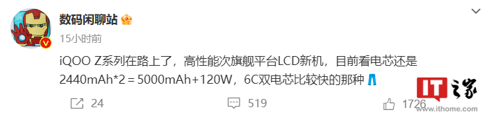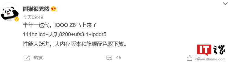 IT之家 7 月 21 日消息,近日有多条关于 iQOO Z8 手机的爆料流出,预计该产品将于近期发布。 据博主 @数码闲聊站 爆料,iQOO Z 系列新机预计搭载高性能次旗舰平台,配备 LCD 显示屏,内置 5000mAh 电池,支持 120W 快充,并且采用充电速度较快的 6C 双电芯。 另一位博主 @熊猫很禿然 则明确指出,半年一迭代的 iQOO Z8 手机将配备支持 144Hz 刷新率的 LCD 显示屏,搭载天玑 8200 处理器、UFS 3.1 ROM 以及 LPDDR 5 RAM,并且会提供大内存版本。 上一代的 iQOO Z7 发布于今年 3 月,IT之家曾对这款机型进行过详细报道。 iQOO Z7 搭载高通骁龙 782G 处理器,内置 5000mAh 电池,支持?120W 闪充。手机正面搭载了一块?6.64 英寸 2388×1080 LCD 挖孔直屏,支持 120Hz 刷新率,背面搭载 64MP 主摄(支持 OIS 光学防抖)以及 2MP 景深镜头。 iQOO Z8 手机的定价可以参考 iQOO Z7,该产品的 8GB+128GB 售价为 1599 元,8GB+256GB 首销价为 1699 元,12GB+128GB 售价为 1899 元。 广告声明:文内含有的对外跳转链接(包括不限于超链接、二维码、口令等形式),用于传递更多信息,节省甄选时间,结果仅供参考,IT之家所有文章均包含本声明。 |