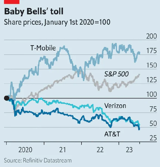 《经济学人》杂志日前撰文称,AT&T和Verizon这两大美国电信巨头的业绩都陷入停滞,难以找到新的突破口。 以下为文章全文: 1980年代初,AT&T曾是华尔街的宠儿。作为当初的科技巨头,它是标普500指数的头号成分股,市值占比达到5.5%。 如今,作为它的后代,AT&T和Verizon只能回忆父辈昔日的荣光。这两家公司在标普500中的市值占比不到0.7%,而且还在下滑。他们的合并市值为2500亿美元,大约是2020年初的一半,而标普500自那以后已经上涨超过2/5。 造成这种局面的原因多种多样,其中一些确实不受他们控制,比如利率的上升或最近发现的老式铅包电缆,后者会给他们的有毒资产潜在责任带来不确定性。 然而,AT&T和Verizon的许多烦恼都是自作自受。这两家老牌电信巨头发现,成熟企业想要在一个饱和的市场上发展是一件多么困难的事情,尤其是当你要应付大量债务时。 出售移动和宽带订阅服务是他们的核心业务,但目前已经陷入停滞。7月25日,Verizon宣布这些业务的营收在第二季度仅同比增长1%。次日,AT&T宣布营收增长2.4%。曾经躺赚的行业如今变得竞争激烈。 2020年,T-Mobile与Sprint的合并创造了一家5G巨头,以更低的价格提供同样快速的移动网络。而在7月26日,卫星电视公司DISH Network也披露了一项与科技巨头亚马逊的合作计划,准备以每月25美元的价格,向亚马逊Prime会员提供移动服务。 之前的豪赌都适得其反。AT&T曾经斥资2000亿美元进军媒体行业,包括收购了时代华纳和DirecTV,但却未见成效。然而,这些举措却对士气和资产负债表产生了持续影响,导致其背负1300亿美元的净负债。 Verizon在支出方面较为收敛,尽管它也在2021年斥资530亿美元购买5G频谱——在当时看来,这似乎是与T-Mobile竞争所必须的,但随着5G的初期炒作平息,这笔投资却并未获得回报。该公司还在努力打造批发业务,允许康卡斯特和Charter等有线电视提供商利用其网络。但此举也培养了新的竞争对手,他们能够以极低的折扣捆绑提供互联网和电视套餐。 如此看来,这两大电信巨头的选择已经不多。其一是保护利润率。Verizon和AT&T都在推销其付费计划。7月24日,Verizon将其家庭无线宽带的价格上调10美元,至每月35美元。此外,这两家公司也都在削减成本,包括关闭零售网点,借此在2023年上半年分别将各自的运营成本同比削减了2.5%。 更激进的做法是效仿意大利TIM等欧洲同行,剥离固话网络。这样便可筹集资本,降低固定成本,也能让管理层集中精力发展无线宽带等增长更快的领域。但这样的交易与整个行业的融合趋势相悖——在争夺消费者的过程中,有线电视公司与电信运营商正在相互渗透。同时为用户提供家用宽带和移动宽带,尤其是以捆绑套餐的形式提供,有助于提高用户粘性,降低流失率,提升长期盈利能力。这至少是一种想法,但对投资者来说,却越来越像是一厢情愿。 |