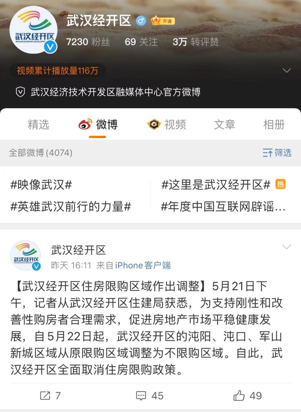 本报记者 杨让晨 张家振 上海、武汉报道 在“因城施策”调整购房政策,合理满足刚需、改善住房需求和促进房地产市场平稳健康发展的大趋势下,华中重镇湖北省武汉市也加入到了调整优化楼市政策的队列。 其中,在因区精准施策方面,据“湖北发布”官方媒体平台5月22日发布的信息显示,武汉市东西湖区、江夏区、黄陂区和武汉经开区等四大区域“全面取消限购政策”。 而在武汉全市范围内,武汉市建立和完善房地产市场长效机制领导小组办公室还于同日出台了支持刚性和改善性住房需求、加大金融支持力度等多项措施,具体包括父母或子女投靠及二孩或三孩武汉市户籍家庭,可在武汉市限购区域内新购买1套住房;非武汉市户籍家庭在限购区域内购买首套住房缴纳社保或个税年限由2年缩短至1年。 对此,武汉市房管局相关工作人员在接受《中国经营报》记者采访时表示,包括武汉经开区在内的四个行政区限购政策“确实已经取消”。而对于后续是否还会扩大解除限购范围的问题,上述工作人员表示,目前来看的话不会。“由于政策刚发布,后续是否有新变化还需要时间观察。” 定向放松“因区施策” “自5月22日起,武汉经开区的沌阳、沌口、军山新城区域从原限购区域调整为不限购区域。自此,武汉经开区全面取消住房限购政策。”5月22日凌晨00﹕13,武汉经开区融媒体中心官方微博“武汉经开区”发布消息称。 值得注意的是,武汉市经开区5月22日凌晨发布的“武汉经开区全面取消住房限购政策”的内容曾被短暂删除,也引发了市场关注。不过,记者5月23日查询发现,上述内容于5月22日下午16时许再度“复出”,具体政策和此前删除的版本也并没有任何区别。 而除武汉经开区正式官宣上述政策外,同时取消限购政策的武汉市东西湖区、江夏区、黄陂区尚未通过官方渠道发布相关信息。记者查阅武汉住保房管办事服务官方微信小程序发现,上述4个行政区域已经不在资格核查区域。 事实上,除上述4个区域解除限购外,武汉市还于5月22日出台了支持刚性和改善性住房需求、加大金融支持力度等多项措施,以促进武汉市房地产市场良性循环和健康发展。 其中,在支持刚性和改善性住房需求方面,对父母来汉投靠子女或子女来汉投靠父母的本市户籍居民家庭,且在武汉市已有2套住房的,在限购区域可新购买1套住房(含新建商品住房和二手住房,下同);对符合国家生育政策生育二孩或三孩的本市户籍居民家庭,且在武汉市已有2套住房的,在限购区域可新购买1套住房。 此外,限购区域内首次购买普通住房的非武汉市户籍居民家庭,在武汉市缴纳社会保险或个人所得税年限由2年调整为1年。 “5月15日,央行、银保监会出台了下调首套住房贷款利率20个基点等多项金融支持措施。在汉银行机构将根据市场化原则适时下调新发放的商业性个人住房贷款利率。”上述政策提出。 在支持房地产开发企业的合理融资需求方面,政策指出,引导金融机构在防范风险的前提下支持房地产开发企业的合理融资需求,稳定增加全市房地产开发贷款投放;加大个人住房贷款投放力度,缩短贷款审批发放周期,积极支持居民家庭合理的住房资金需求;加大对长租房市场、保障性住房建设的金融支持力度。 对此,中指研究院华中市场研究中心主任李国政表示,武汉市此次出台的政策首先是响应国家楼市调控相关精神,满足居民的合理购房需求。“武汉楼市新政点面结合,精准施策,满足了亲属投靠、多孩家庭和非本地户籍等群体的自住需求,同时也有定向放松限购的动作,综合此前房贷利率下调形成了‘组合拳’效应,有利于促进需求释放,激活市场成交。” 政策符合市场预期 今年以来,武汉房地产市场持续低迷。 据武汉市住房保障和房屋管理局发布的同步数据显示,今年1~4月,武汉市新建商品房网签销售面积519.36万平方米,同比减少39.78%。其中,新建商品住房网签36639套,网签销售面积404.48万平方米,同比减少47.26%。 而在刚过去的4月份,武汉新建商品住房网签销售9680套,网签销售面积103.23万平方米,环比减少9.77%,同比减少58.48%。 分区来看,武汉市各区商品住房成交套数差距较大。武汉市住房保障和房屋管理局数据显示,武汉市中心城区的江岸区今年4月份的成交套数达到3777套,成交面积达到约35.35万平方米,成交量远远超过武汉经开区和江夏区等此次放宽限购政策涉及的区域。 而武汉经开区和江夏区等区域也是武汉市房地产市场供应的主力,开盘去化率也不断走低。克而瑞研究中心在日前发布的《疫情下武汉城市房地产市场发展趋势报告》中指出,平推项目多位于远郊板块,武汉市主城区市场热度明显高于远郊,但不同板块以及项目之间分化仍不断加剧。“城市核心区域差异化竞争结合毛坯性价比实现开盘优异去化,远郊规划配套欠缺,低性价比项目去化受阻。” 在交易量同比下降的情况下,库存商品住房数量仍然巨大。相关数据显示,截至2022年4月末,武汉市尚有已批准预售但尚未网签的商品住房182495套,面积达到2119.84万平方米。 中指研究院数据也显示,今年1~4月份,武汉市新建商品住房销售面积404.48万平方米,同比减少47.26%;截至4月底,住房去化周期达到12.9个月,其中新城区平均达17.4个月,市场压力不断显现。 易居研究院智库中心在《5月全国百城住宅成交检测报告》中表示,如武汉市等二线